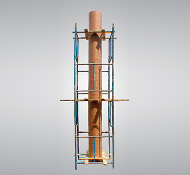 MODO DE USAR: Colocar o tubo no local da concretagem com a base e ferragens prontas, com o uso de andaimes ao redor do tubo que já serviram para o travamento e o enchimento de concreto.